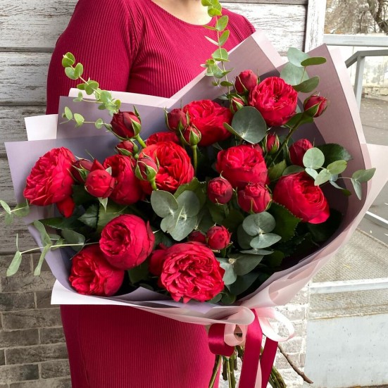 Роза кустовая пионовидная красные 9 шт.